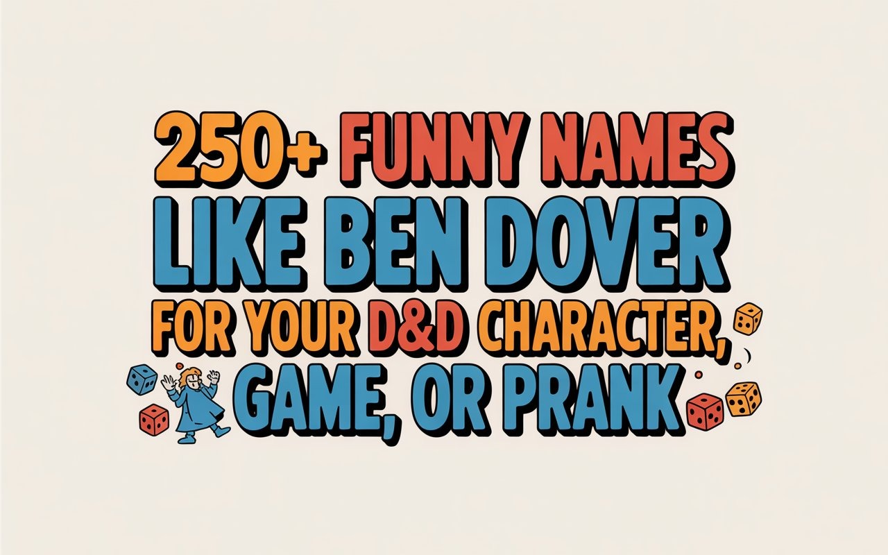 Funny names like “Ben Dover” never fail to bring laughter and creativity to any situation. Whether you’re making a D&D character, playing a game, or pulling a lighthearted prank, these names add fun and personality. From food and animals to superheroes and world-inspired puns, there’s endless room to play with words.